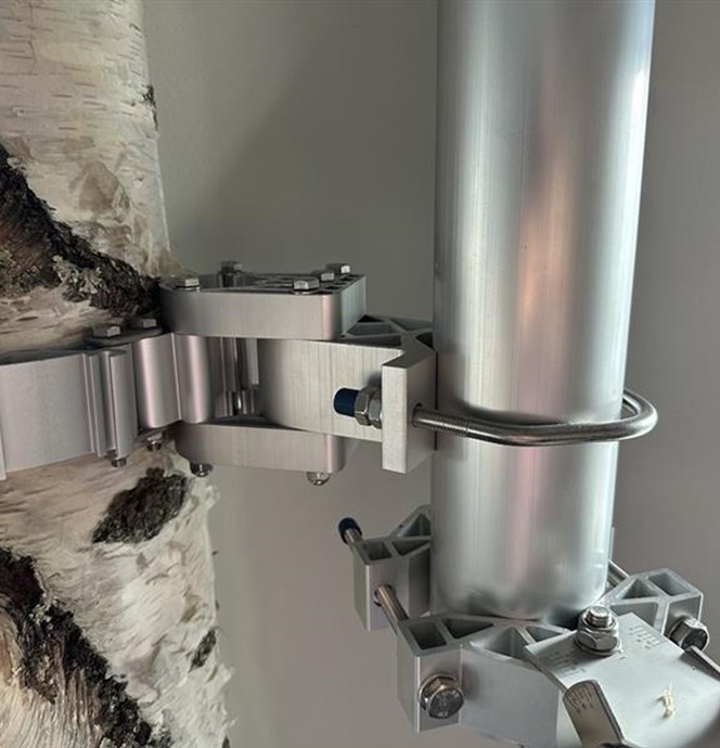 Oferuje to unikalną elastyczność przy instalacji i pozwala na dokładne pionowe mocowanie nawet na stożkowych monopalach.