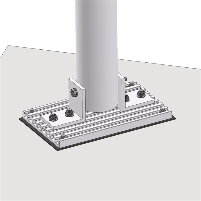 Dipod jest wszechstronną konstrukcją zarówno dla dachów płaskich, jak i pochyłych; to rozwiązanie dipod oferuje główny słup o wysokości 4 metrów i średnicy 114 mm w połączeniu z dwoma wspornikami 75 mm.