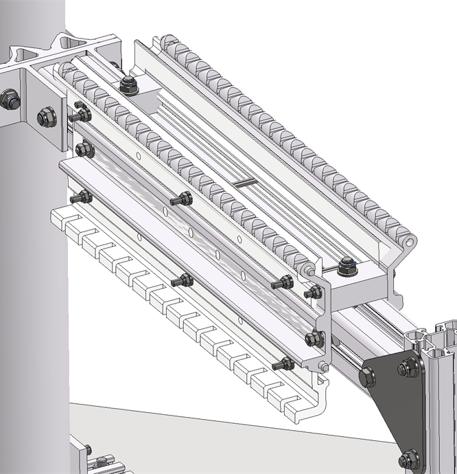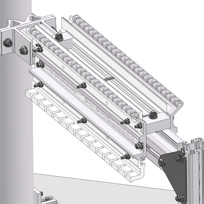Opcjonalna rama sektorowa z przesunięciem w tym przykładzie oferuje dwie pozycje antenowe, a opcjonalne wsparcie radiowe umożliwia umieszczenie jednostek radiowych w bliskim sąsiedztwie anten.