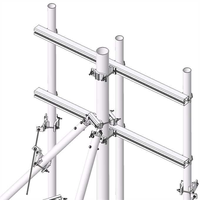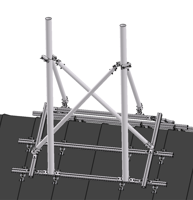 Dipod jest wszechstronną konstrukcją zarówno dla dachów płaskich, jak i spadzistych; to rozwiązanie dipodowe oferuje 2-sektorowe rozwiązanie nad kalenicą dachu z dwoma głównymi słupami o długości 3 metrów i średnicy 114 mm w połączeniu z czterema wspornikami o średnicy 75 mm.