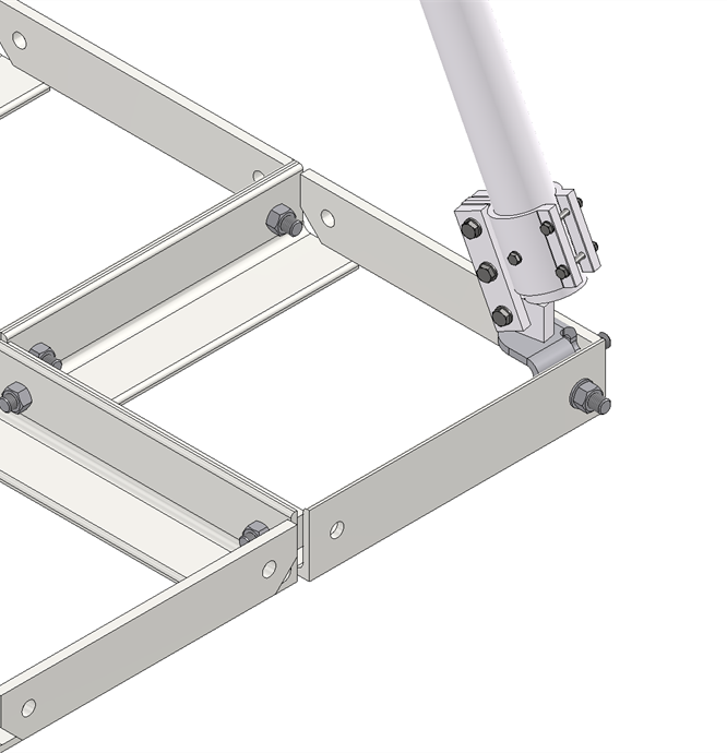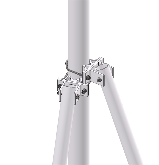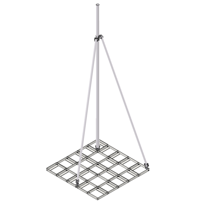 The antenna bearing superstructure consists of a dipod with a 6 meter high main pole and two struts that are made from light weight anodized aluminum tubes connected with acid proof stainless steel fasteners.
