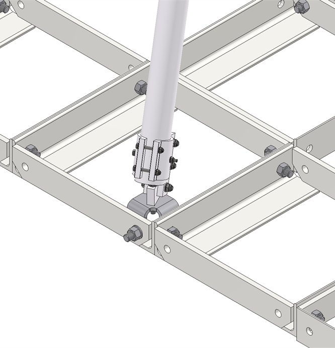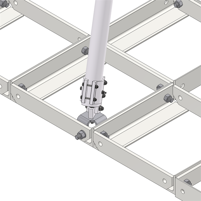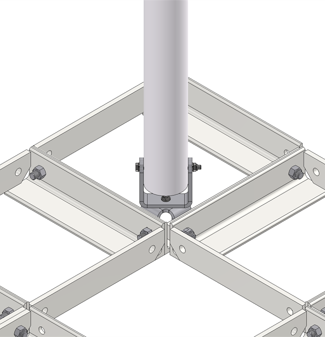 The base is built on a scalable matrix of box modules that can be expanded should a future need arise. Each ballast box weighs 23kg, is 500mm x 500mm, made of HDG steel and can accommodate standard 400 x 400mm concrete pavers for extra ballast.