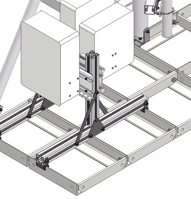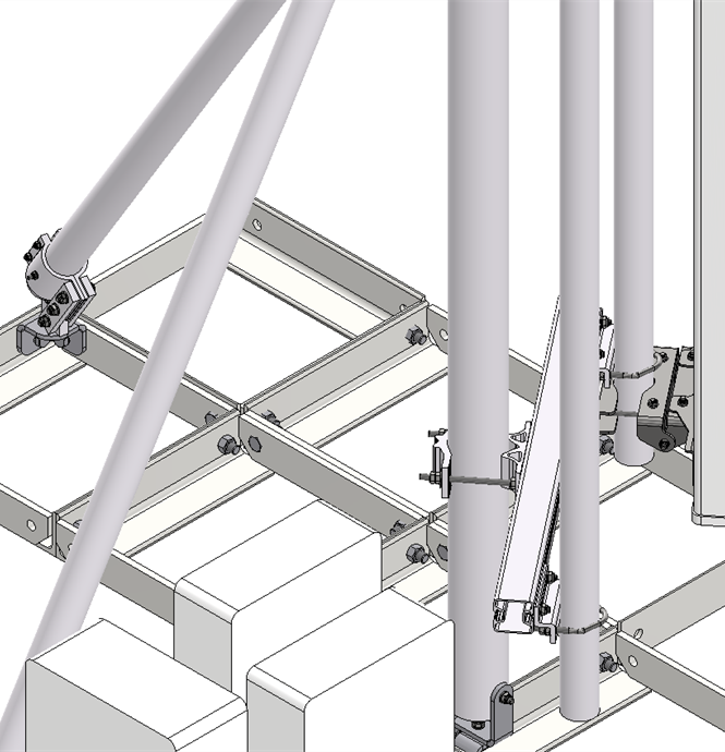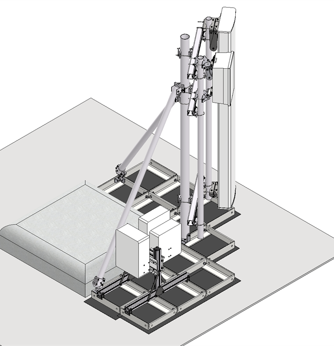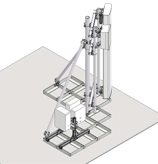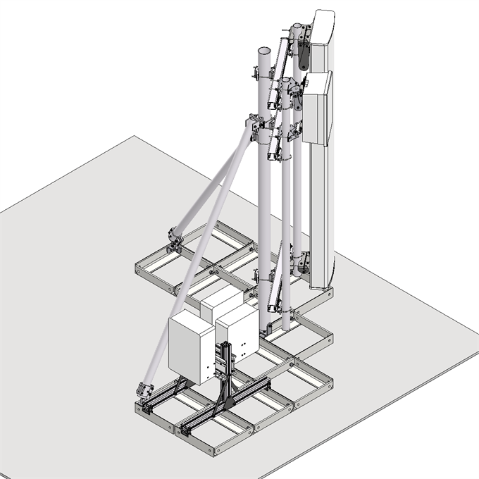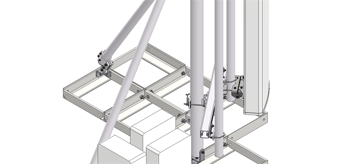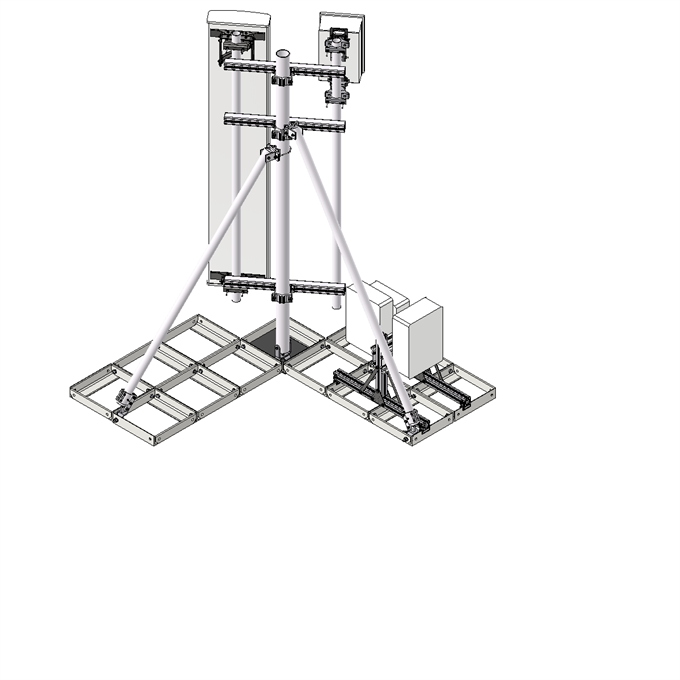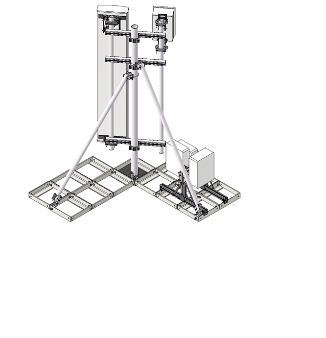 The antenna bearing superstructure consists of a dipod with a 3 meter high main pole and two struts that are made from light weight anodized aluminum tubes connected with acid proof stainless steel fasteners.