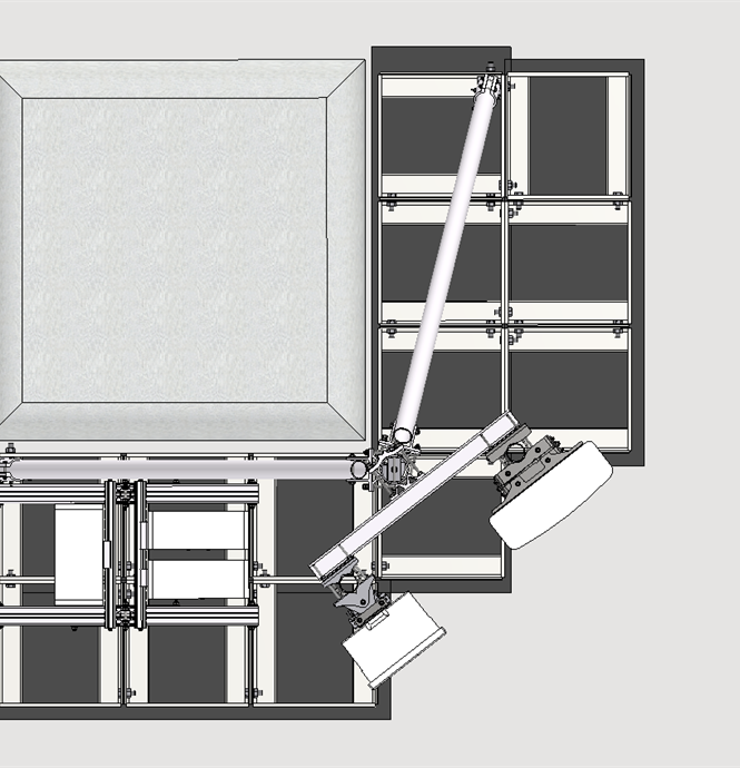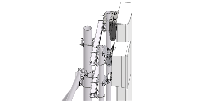 On the main pole a three level off-set frame is installed that offers two antenna bearing tubes.