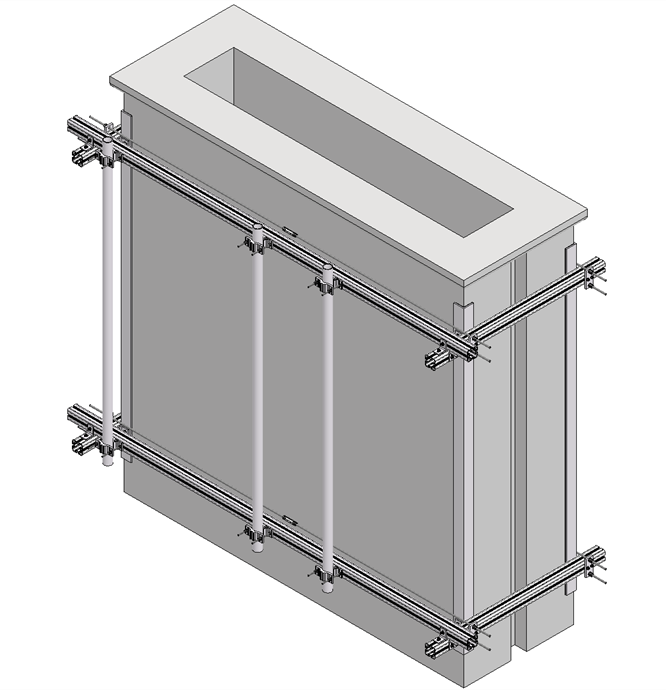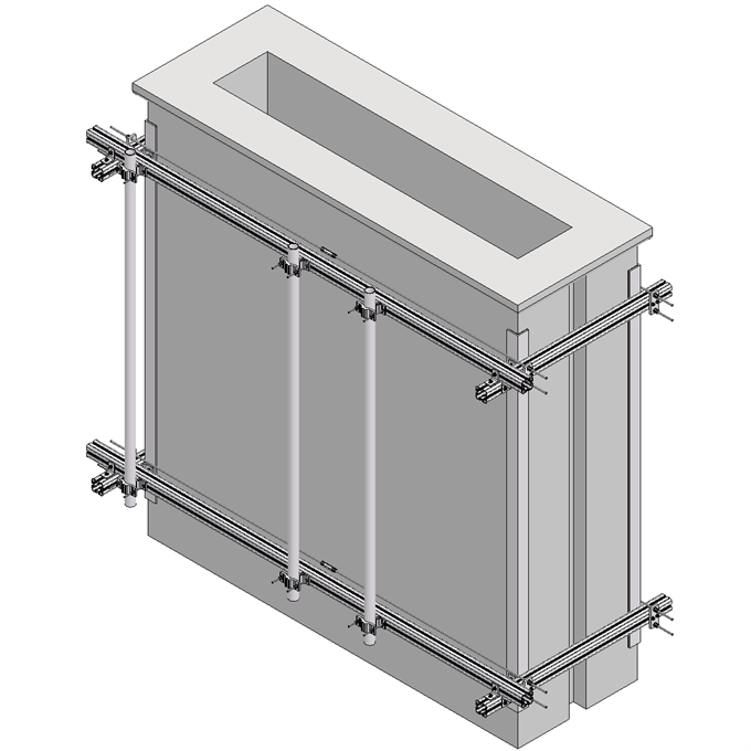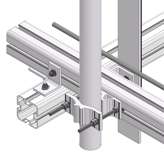 The solution is made from naturally anodized extruded aluminium with acid proof stainless steel fasteners.