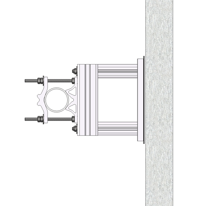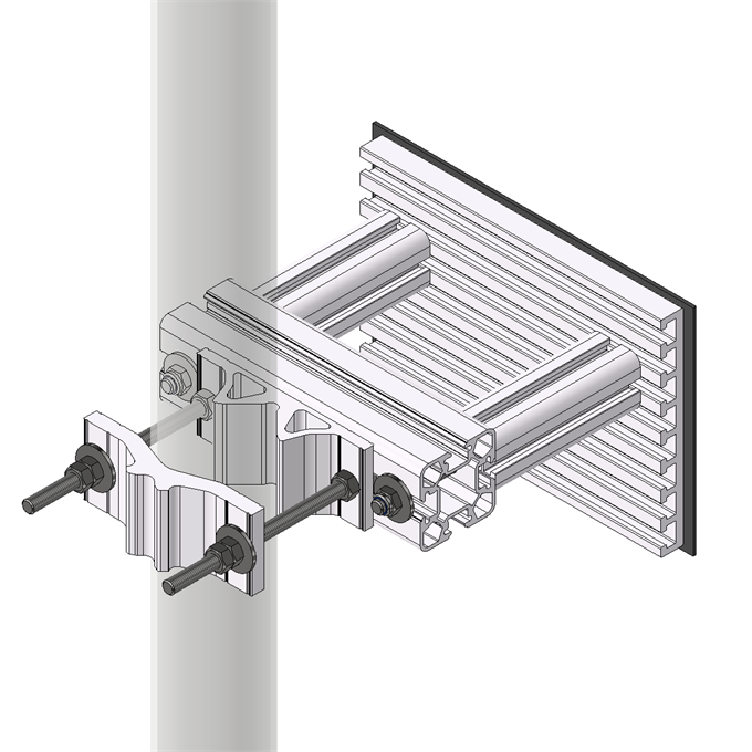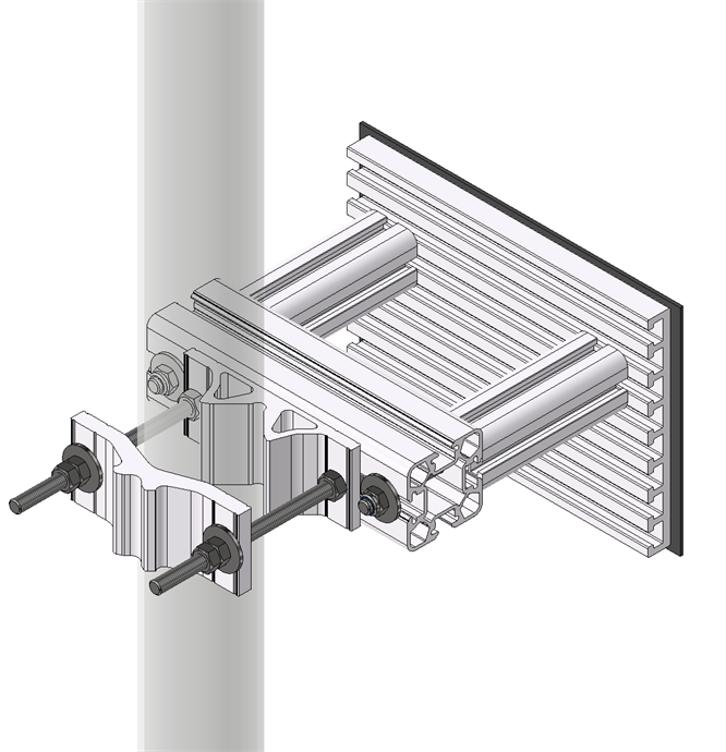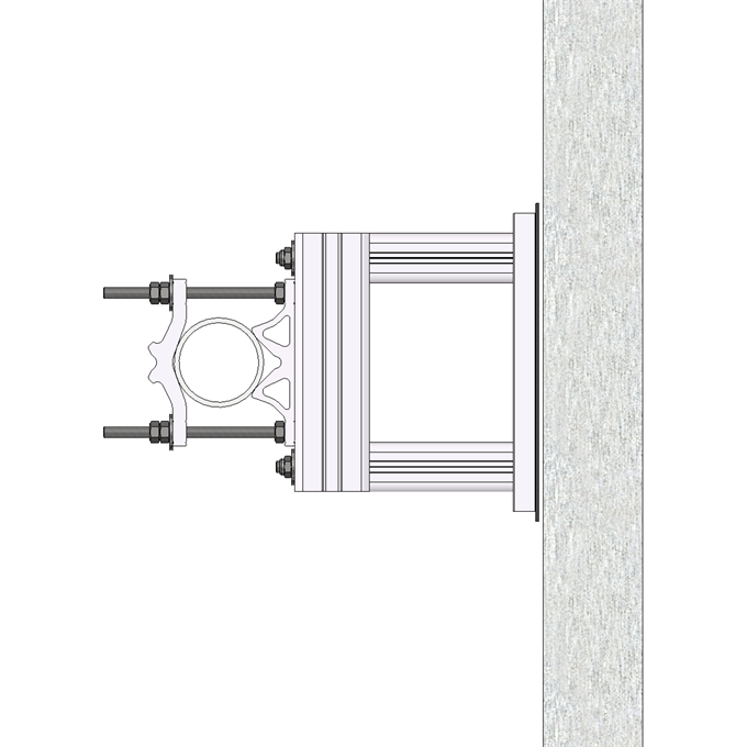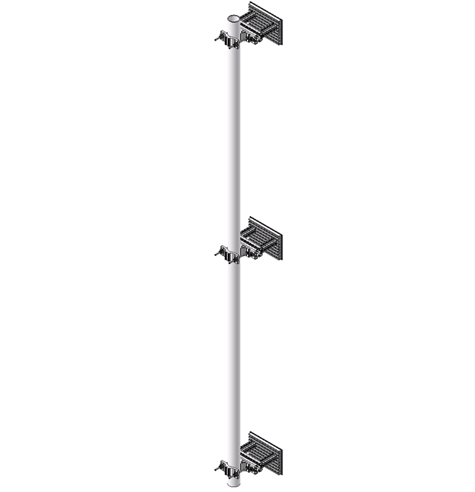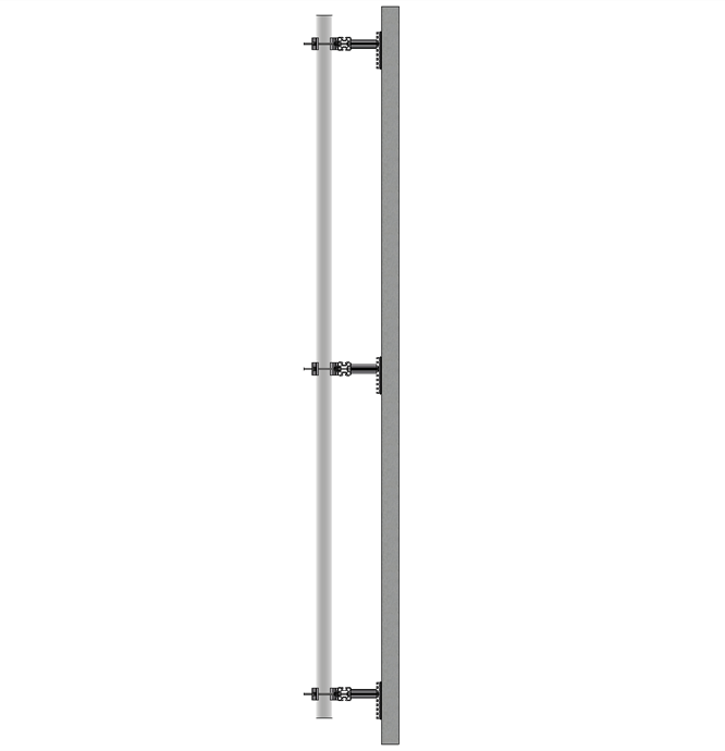 Wall mounting solution with triple support that stands out from the wall, enabling installation of radio units behind the panels.